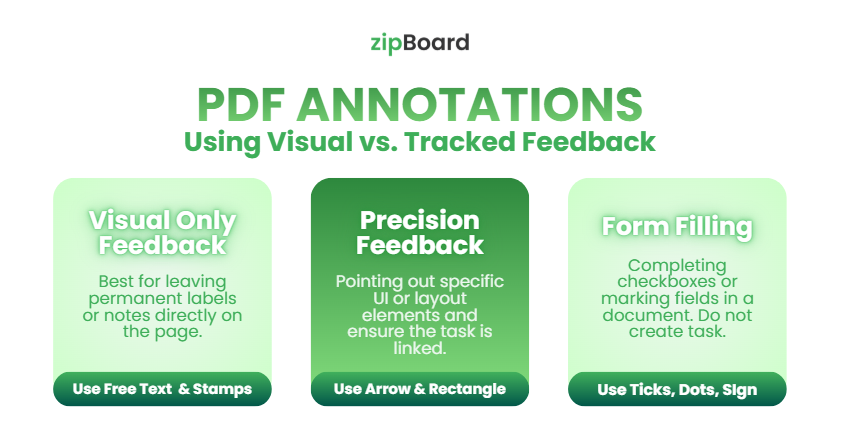 - Visual-Only Feedback: Use Free Text or Stamps if you want to leave a permanent label or label on the page without cluttering your task list.