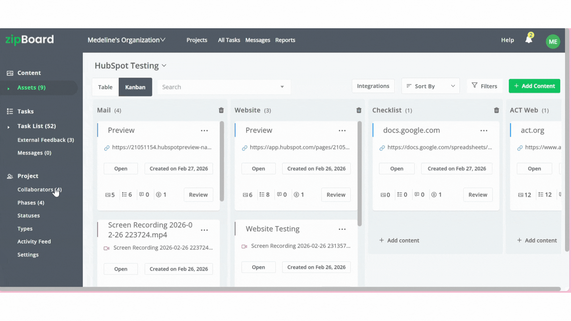 Once uploaded, your files appear as reviewable assets.